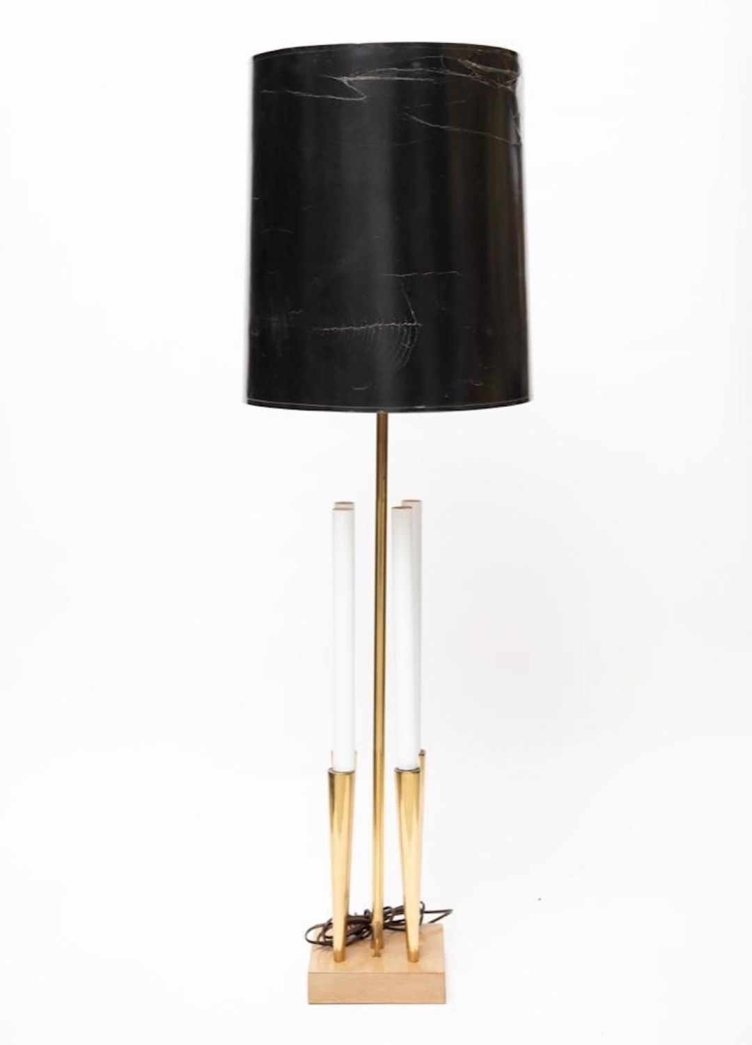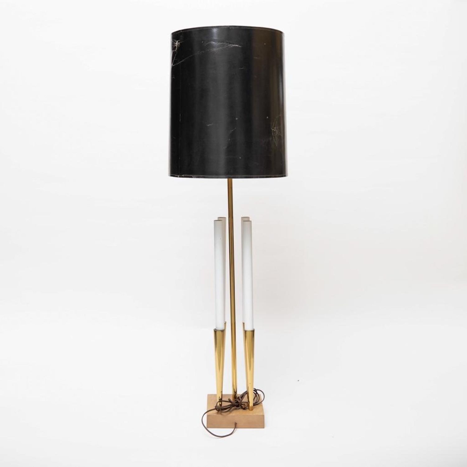 Tommi Parzinger for Stiffel Mid Century Tall Lamp 48" height, There is damage to the shade. Please see photos. lamp is is good condition