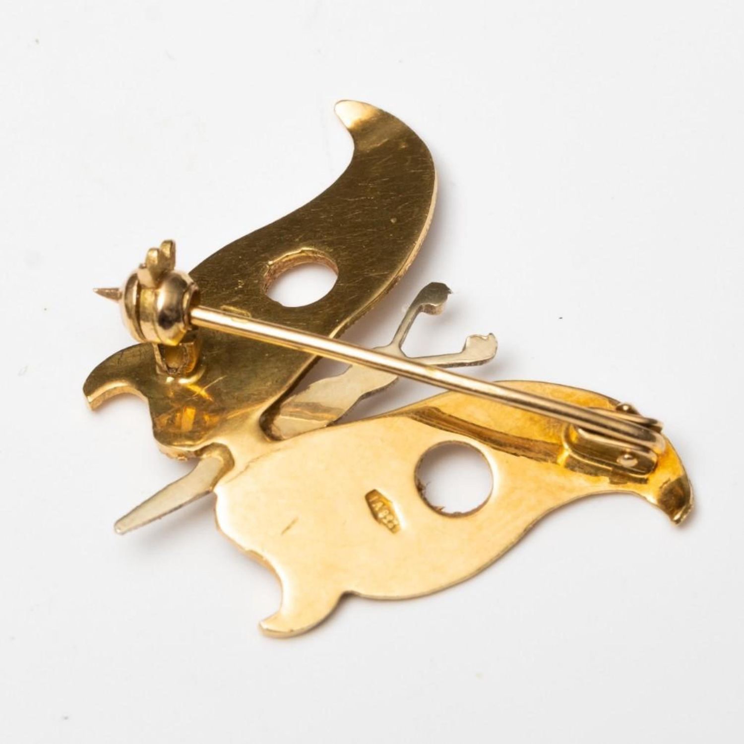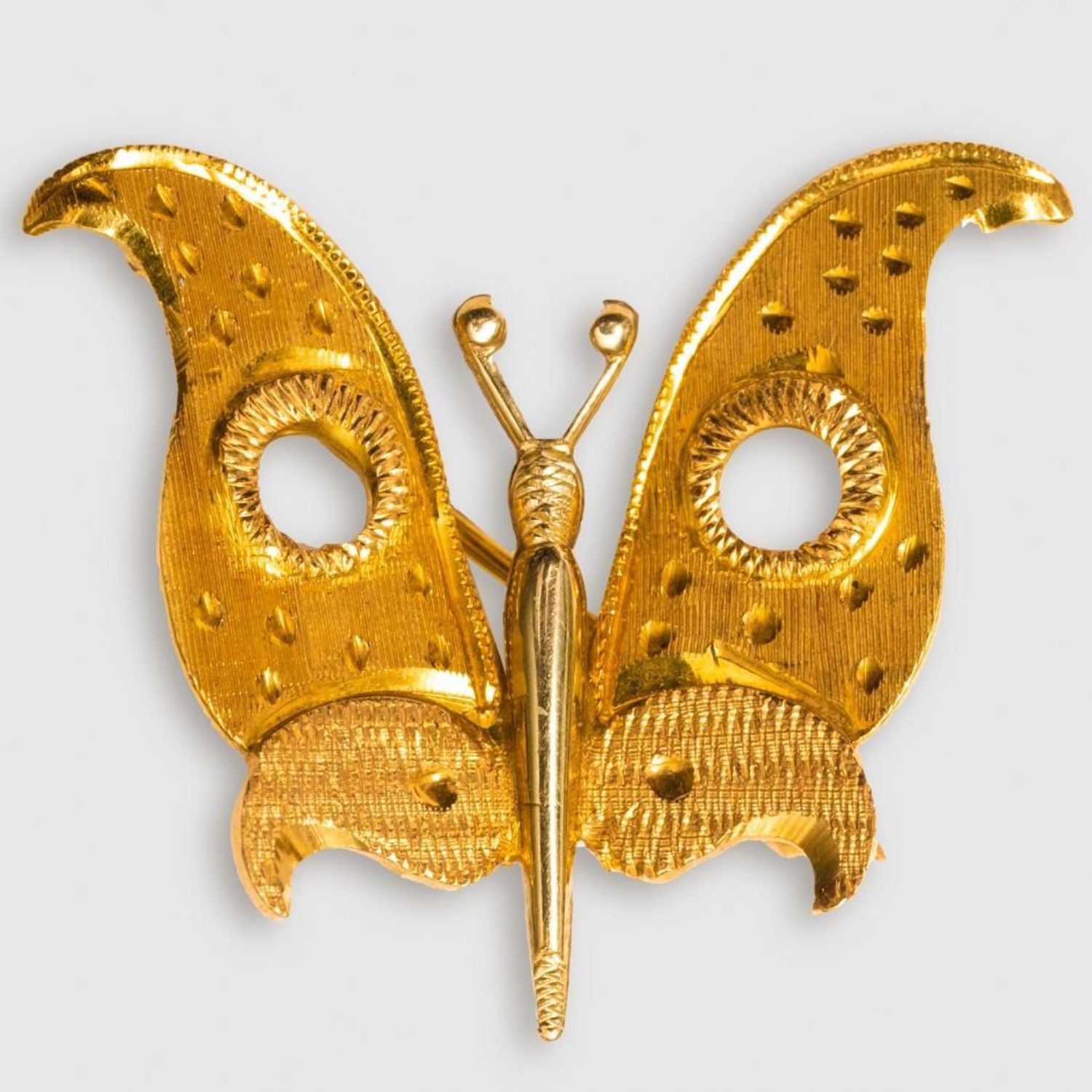 Vintage 18K Yellow gold Butterfly brooch with makers mark. The pin measures 1 1/8" x 1" and weighs 3.1 grams and is in good condition