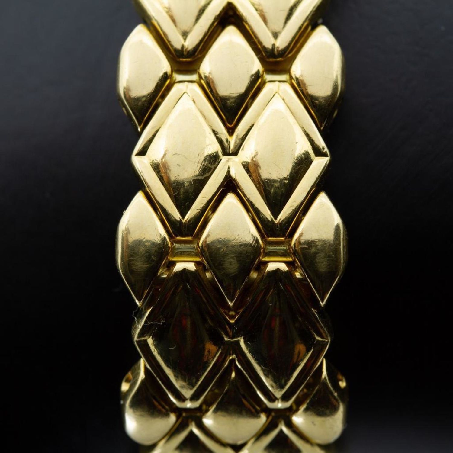 Chaumet Diamond wristwatch, 18k 60.4dwt. Offered is a Chaumet Diamond wristwatch, 18k 94.4 grams. Champagne Guilloche Dial with Diamond Hour Markers, Date Indicator, Second Hand, and Sapphire Crystal.Matching 18K Yellow Gold Chaumet Bracelet with Hidden Clasp. Quartz Accuracy Movement Chaumet One of the great names in jewelry since the 15th century They’ve recently received new finances and are on their way towards a massive reorganization They understand great watches They were Abraham Breguet’s first official dealer. Watch face measures just under 1" Please note the gallery does not warranty the running condition of watches. Probably needs servicing.