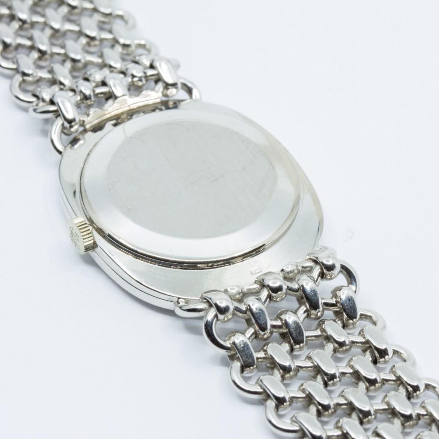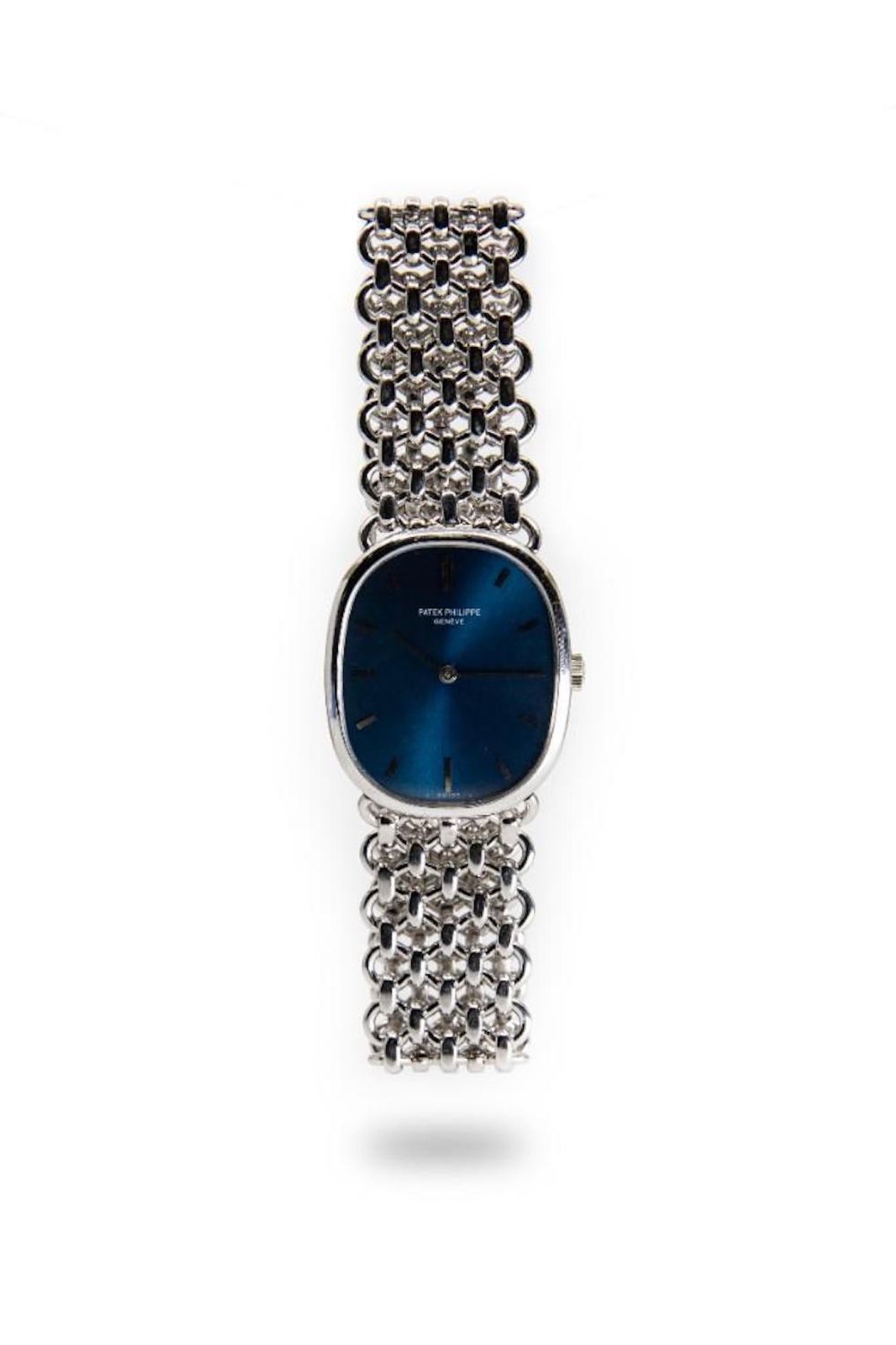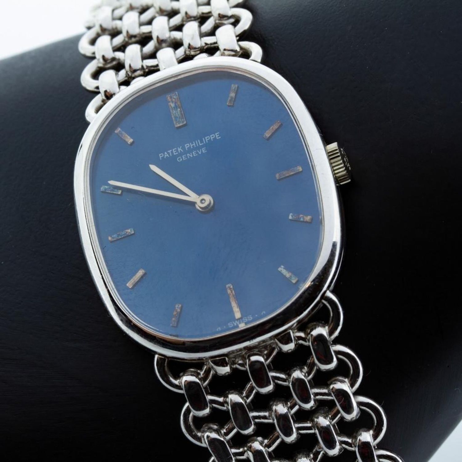 Vintage and Rare White Gold 1972 Patek Philippe Golden Ellipse 18K White Gold Wristwatch with Sigma Dial and original band. Band has the markings on it. Model Number 3648. Markings on inside. Patek Philippe & Co., Geneve Swiss, 18K, 0.750, Helvetia Hallmark, FBG, 2749510, 36481. Measures 7.75"L. I wore it for a week, worked well…Running at time of evaluation without detailed testing. Please note the gallery does not warranty the running condition of watches. .Good condition