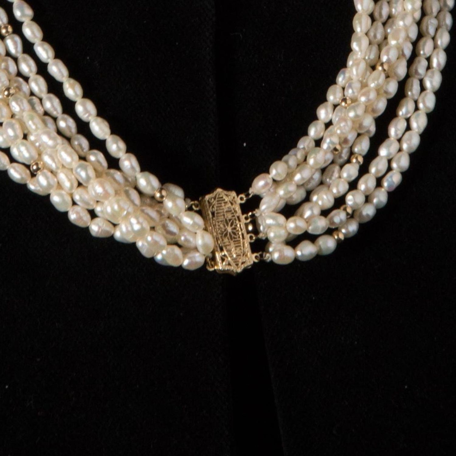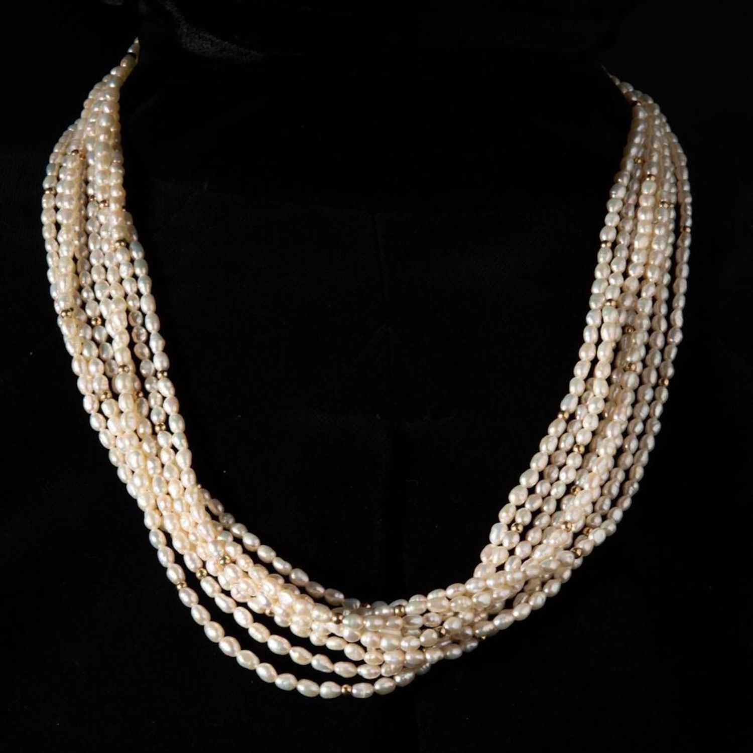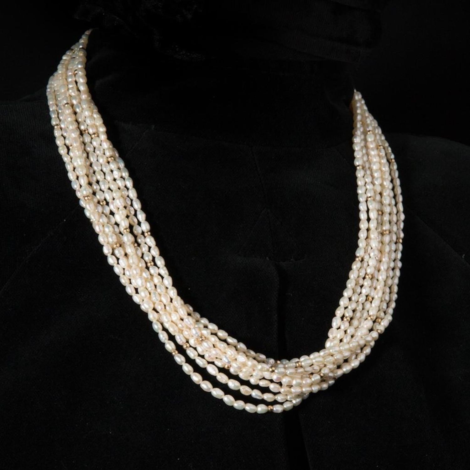 Mid Century 8 strand seed pearl and 14K gold bead necklace 24" strands good condition