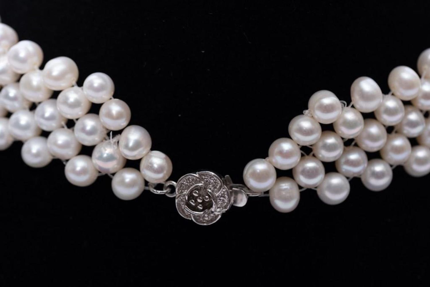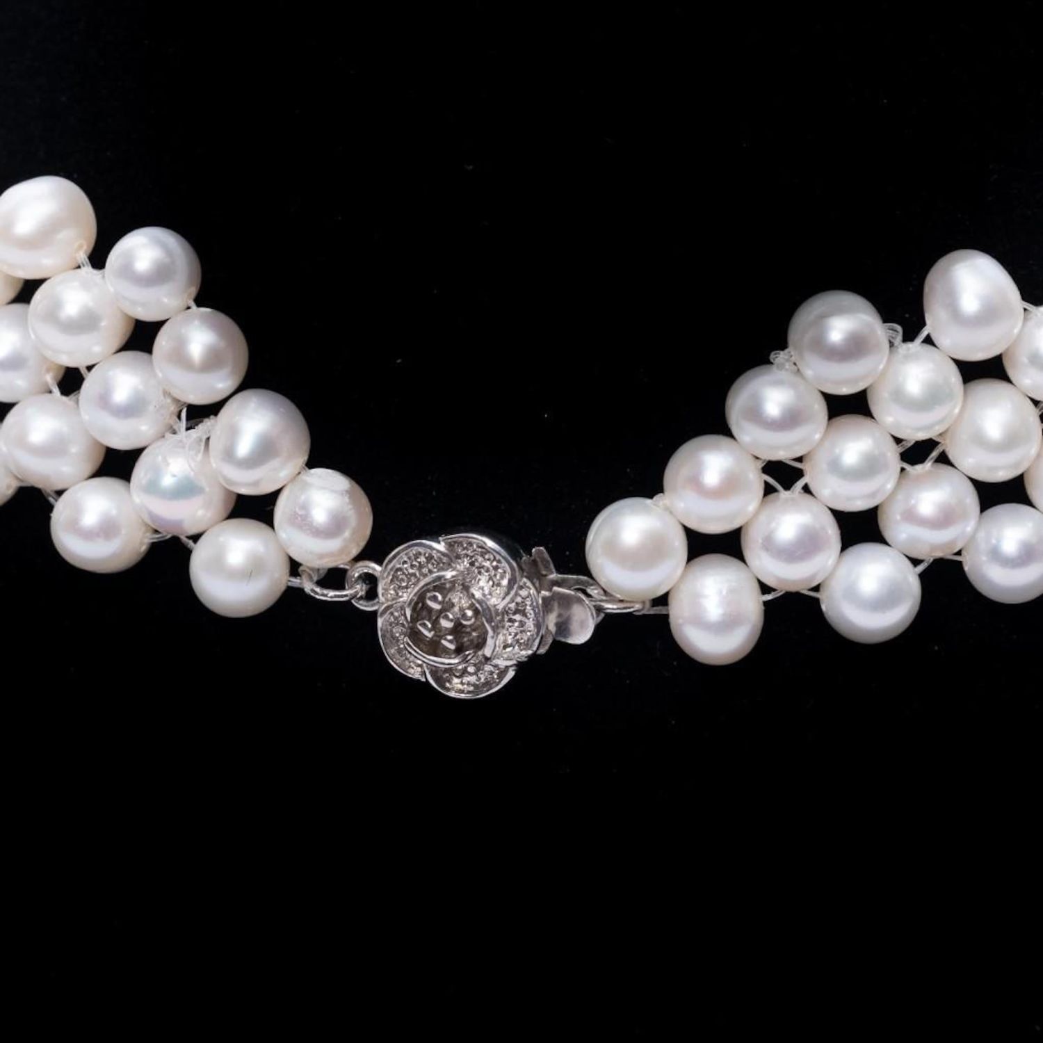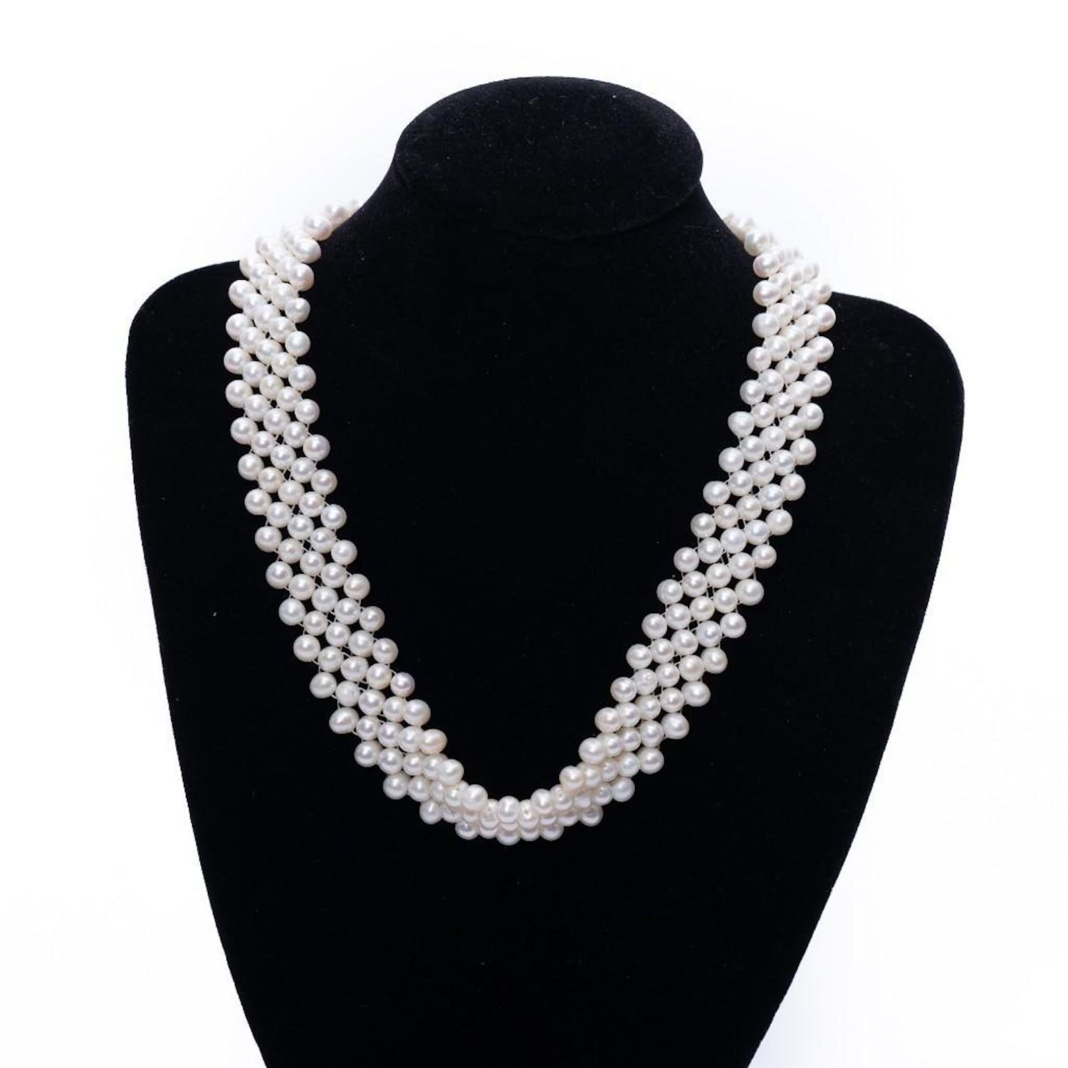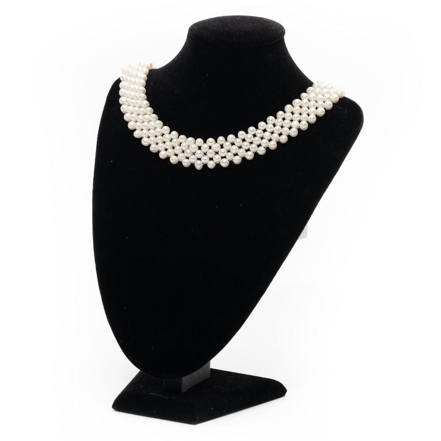 vintage mid century 5 strand pearl necklace with sterling clasp pearls 5-6.5mm approx 2oz 16" approx. This lot is accompanied by a GIA appraiser letter from an independent and well respected firm established over 75 years ago.
