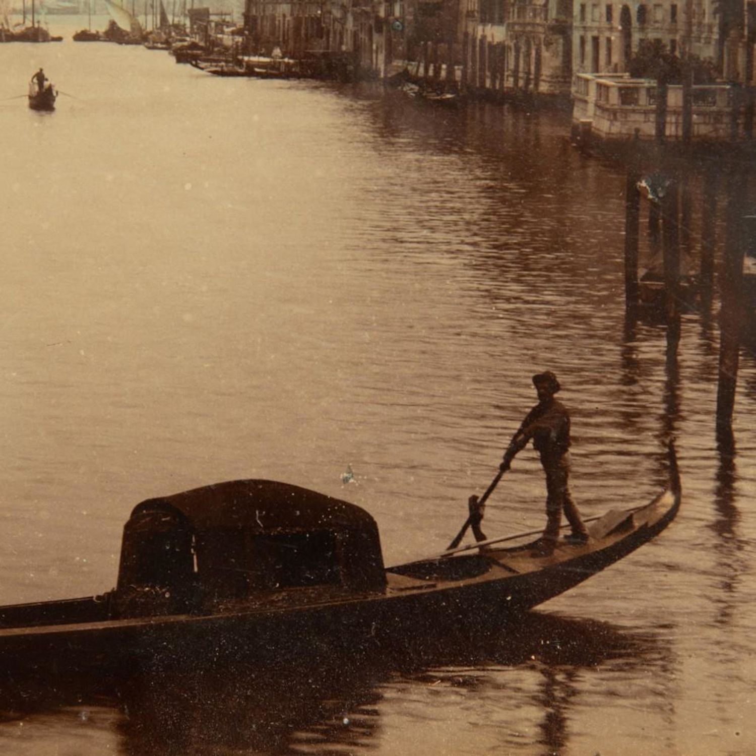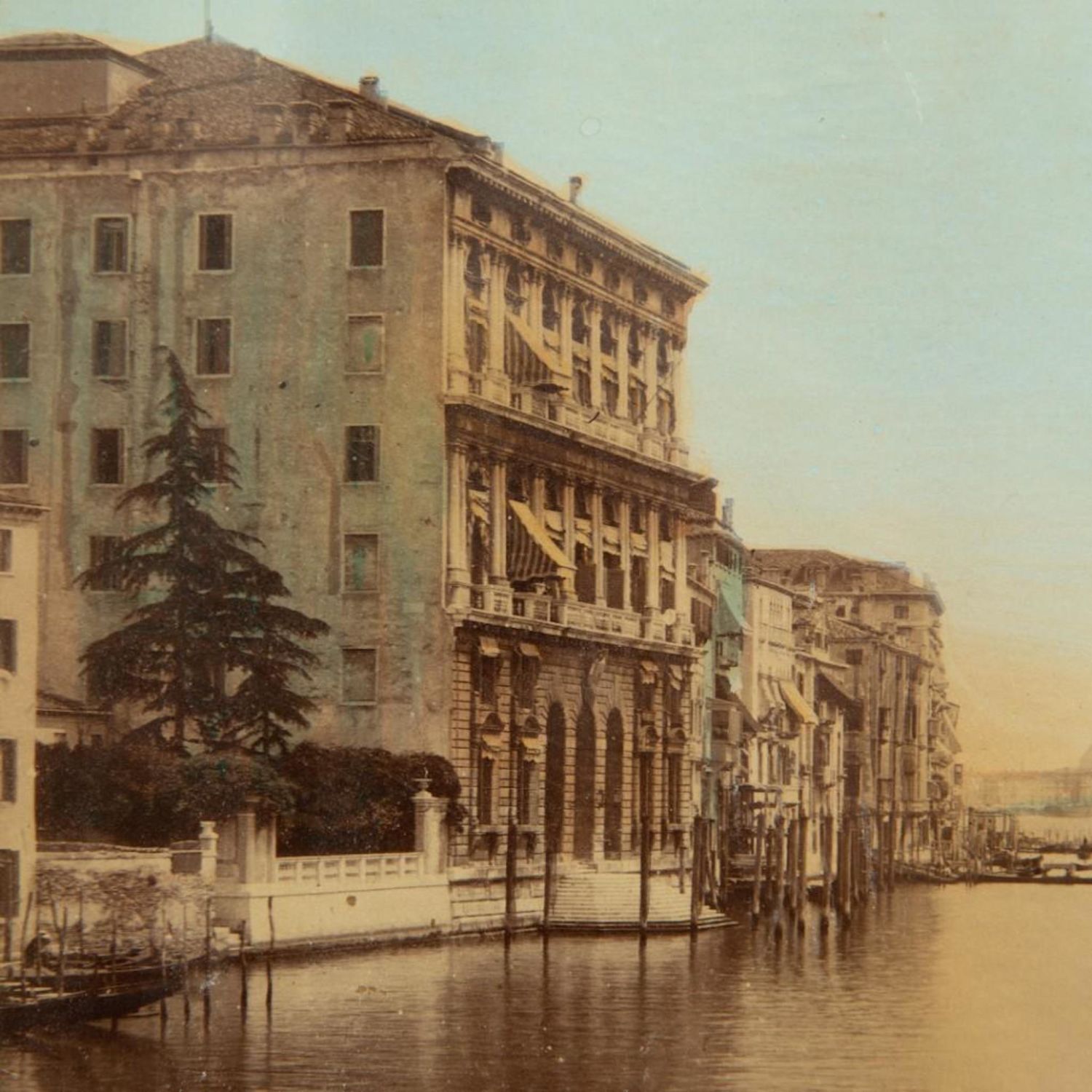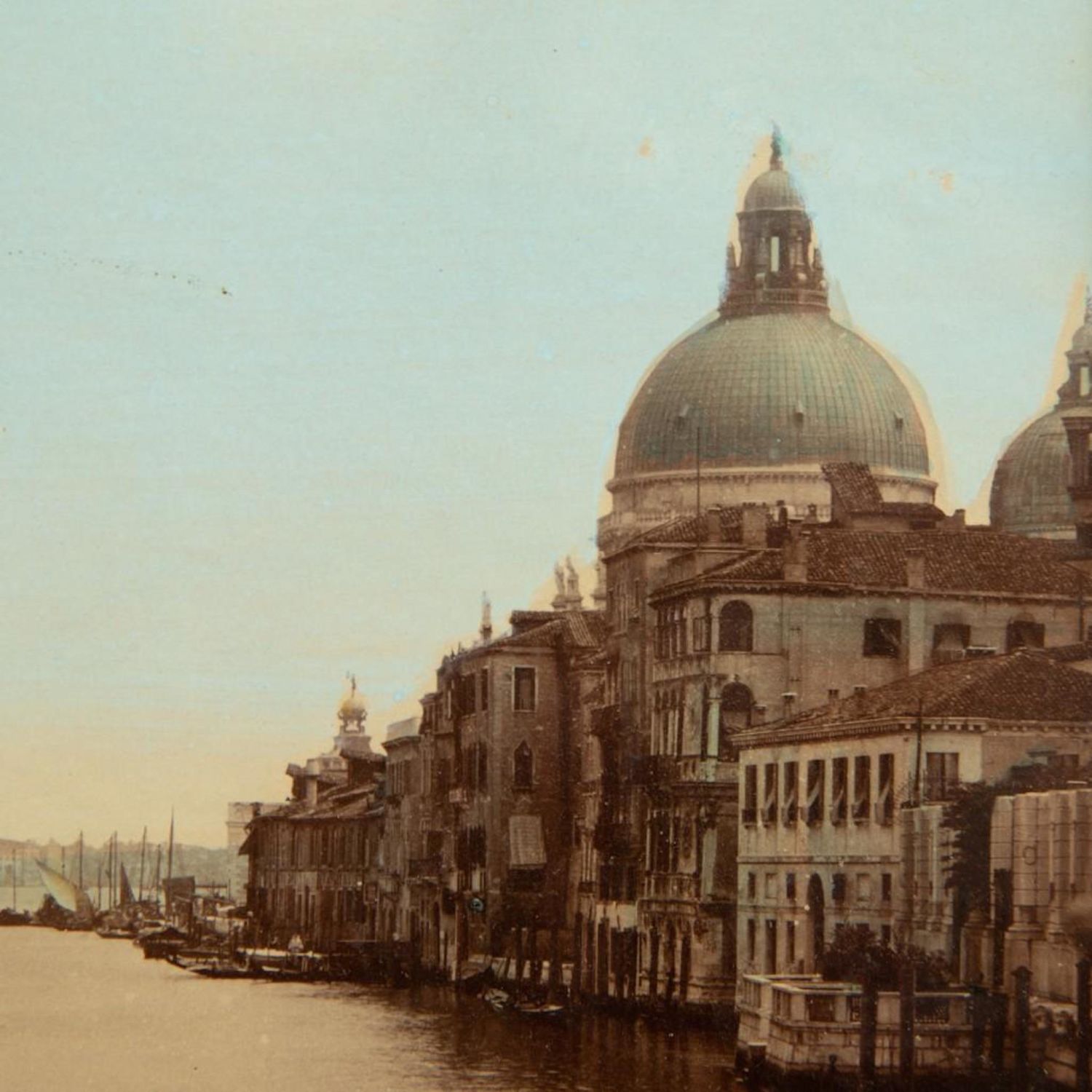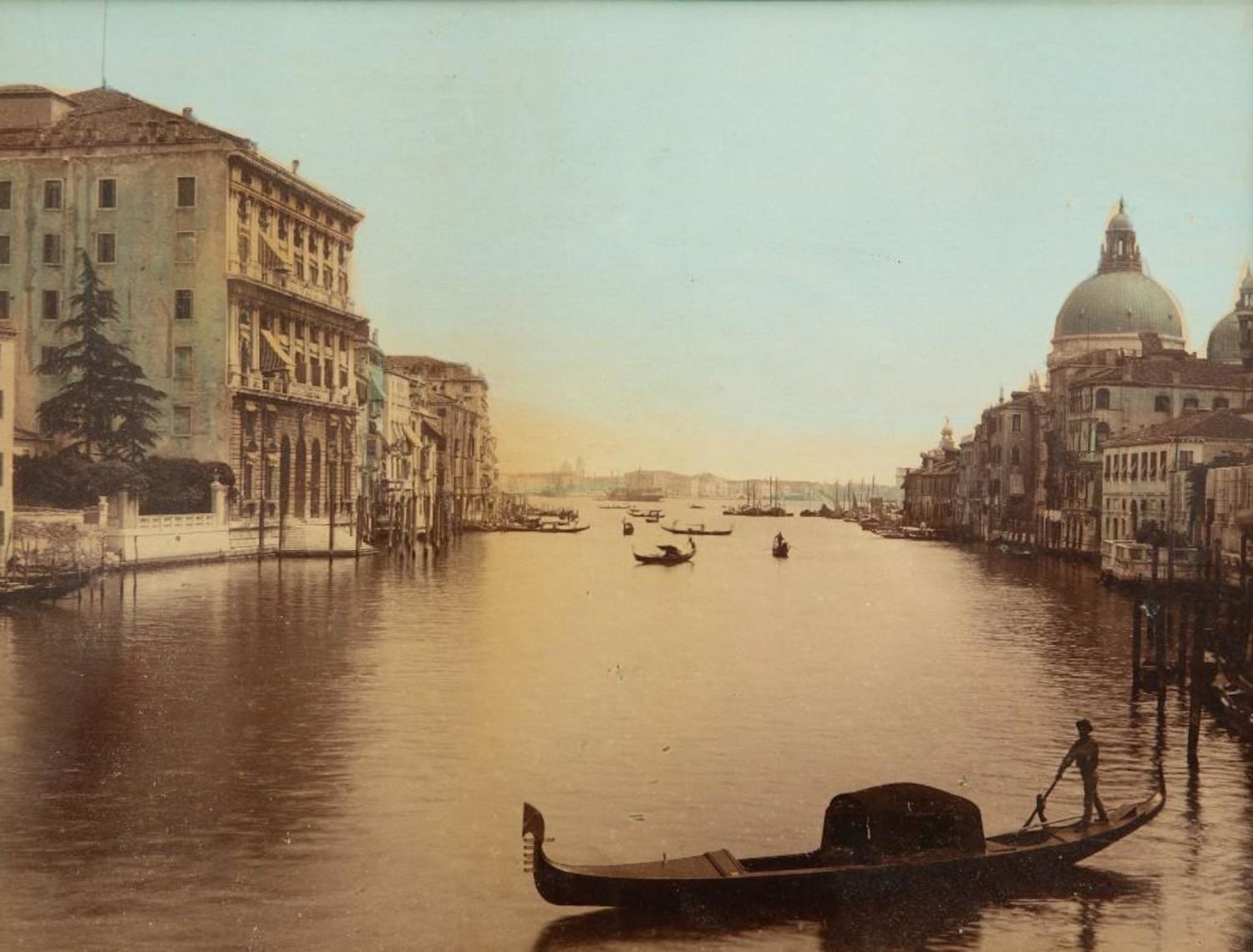J. Kuhn Attributed albument late 19th century hand tinted photo of the Grand Canal in Venice, matted and framed under glass, measures 15” H x 18” W. good condition