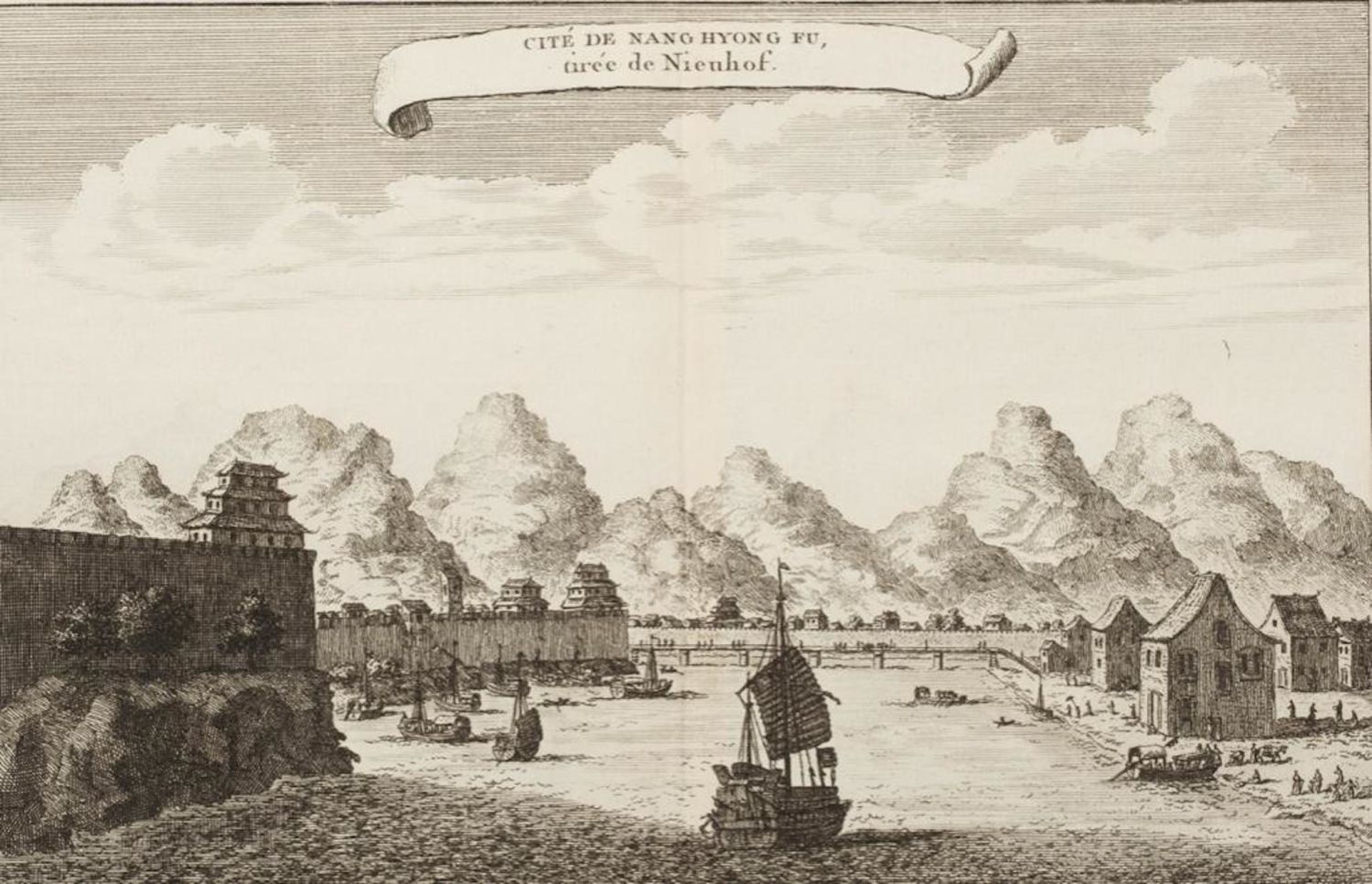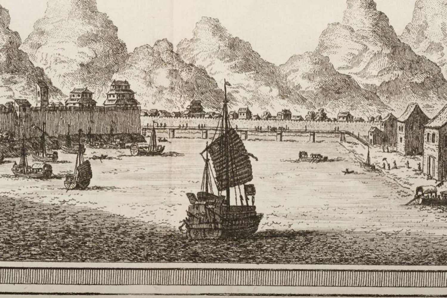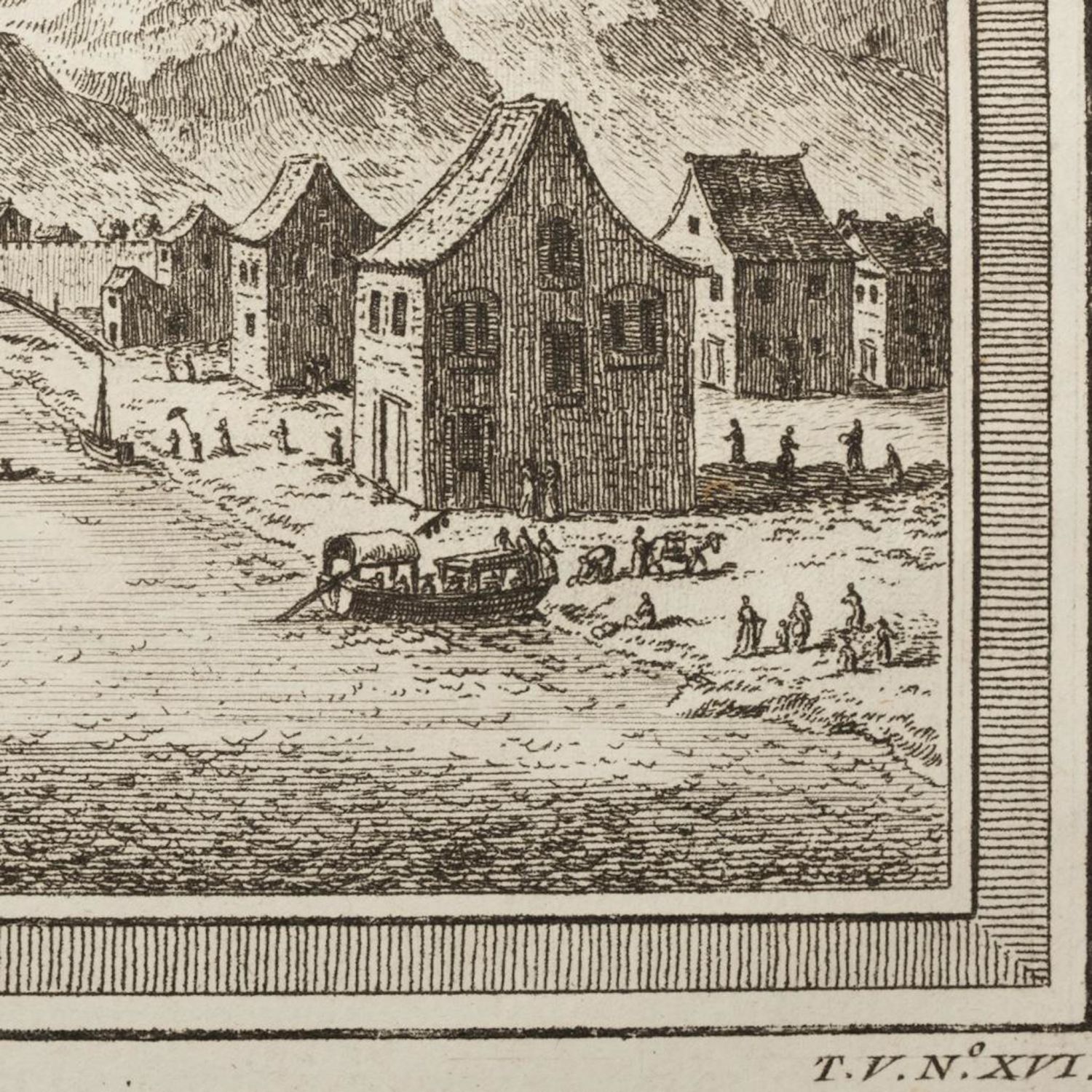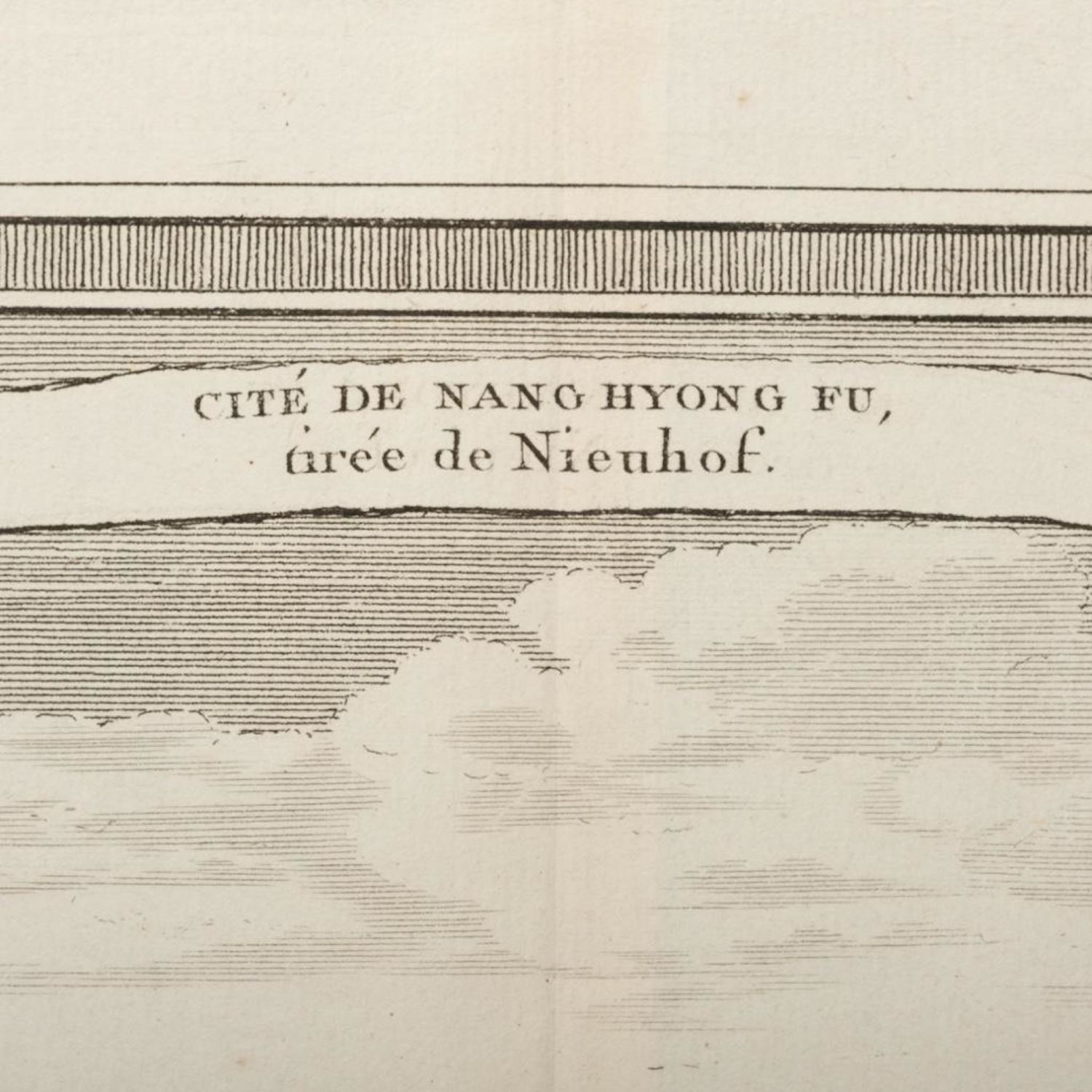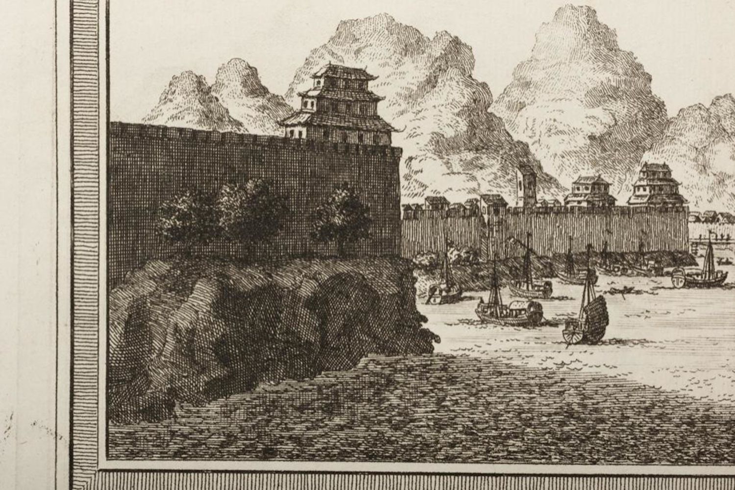 Antique Panoramic view of Cite De Nag Hyong Fu by cartographer Jacques Nicolas Bellin. Circa 1750. 10" x 14" Jacques Nicolas Bellin was a French hydrographer, geographer, and member of the French intellectual group called the philosophes. Bellin was born in Paris. He was hydrographer of France’s hydrographic office, member of the Académie de Marine and of the Royal Society of London. overall good condition