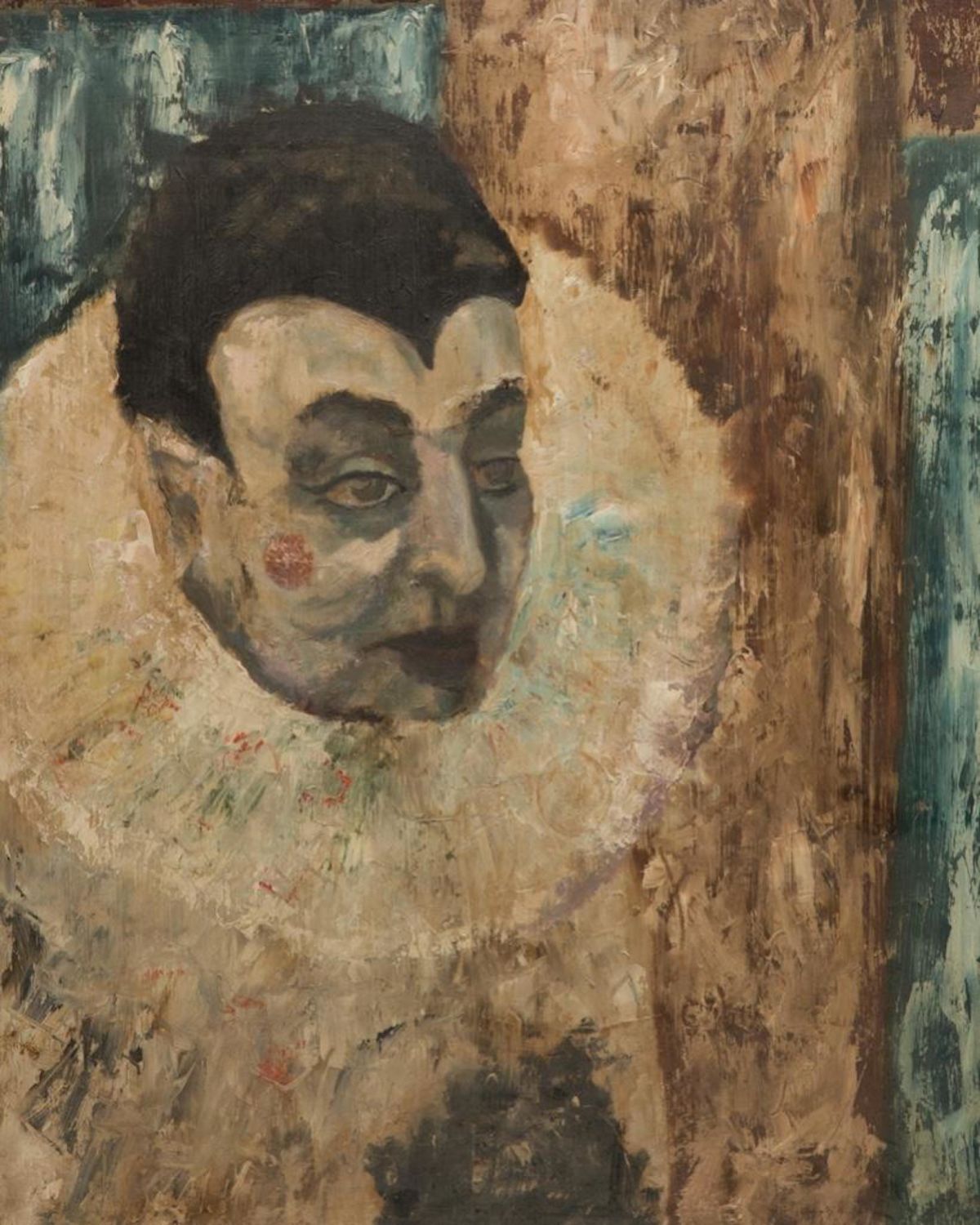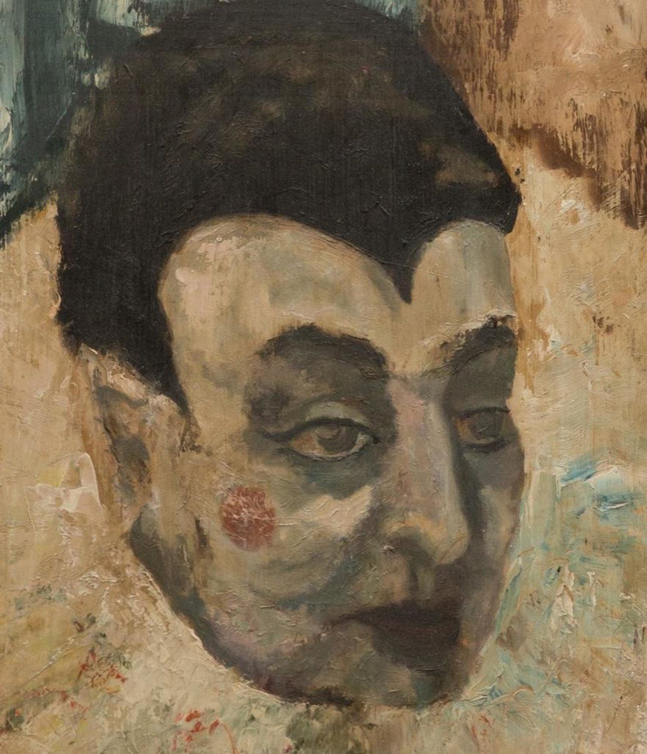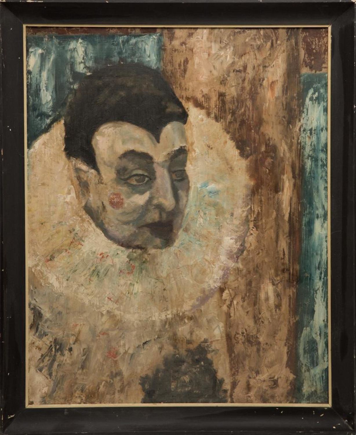 Portrait of Enrico Caruso as Canio in Ruggero Leoncavallo’s Pagliacci. Unsigned. Oil painting on Masonite, 25 x 20 in., framed. Condition: Surface grime.